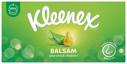 KLEENEX® Vreckovky Balsam box 64 ks Vreckovky majú vynikajúce ukľudňujúce účinky pri najťažších prechladnutiach.