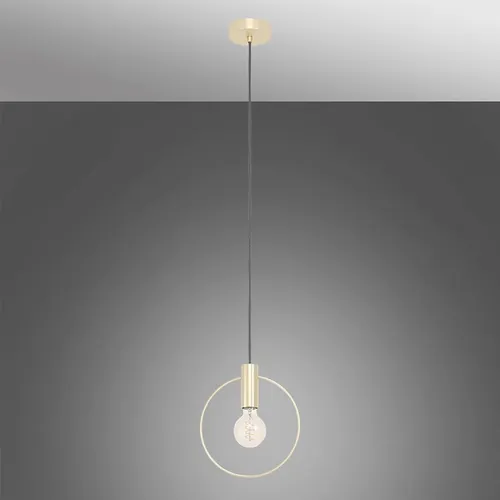 Závesné svietidlo MANIZALES je vyrobené z ozdobného kovového prsteňa z brúsenej mosadze. Lampa mosadznej farby je zavesená na čiernom textilnom kábli. Elegantné závesné svietidlo sa perfektne hodí k minimalistickému nábytku a poskytuje atmosférické osvetlenie obývacej izby alebo jedálne nad jedálenským stolom. Vyobrazená žiarovka nie je súčasťou dodávky. Svietidlo je vhodné pre akýkoľvek svetelný zdroj s objímkou E27.