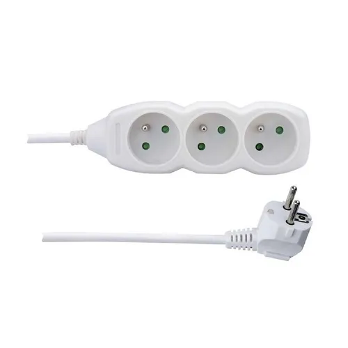 Emos Predlžovací kábel biely, 3 zásuvky, max. 16 A/3680 W, 1,5 m